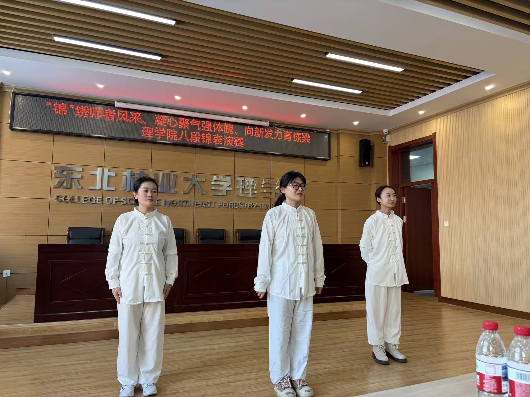 比赛现。鞔矶幼孕凶橹骋蛔抛,精神饱满,气宇轩昂。伴随着悠扬婉转的韵律,参赛老师们动作舒展大方,刚柔并济,将八段锦柔和连贯、圆活虚实的特点展现得淋漓尽致。一招一式中,不仅展现了理学院教师昂扬向上的精神风貌,更体现了中华传统健身气功的独特韵律之美。