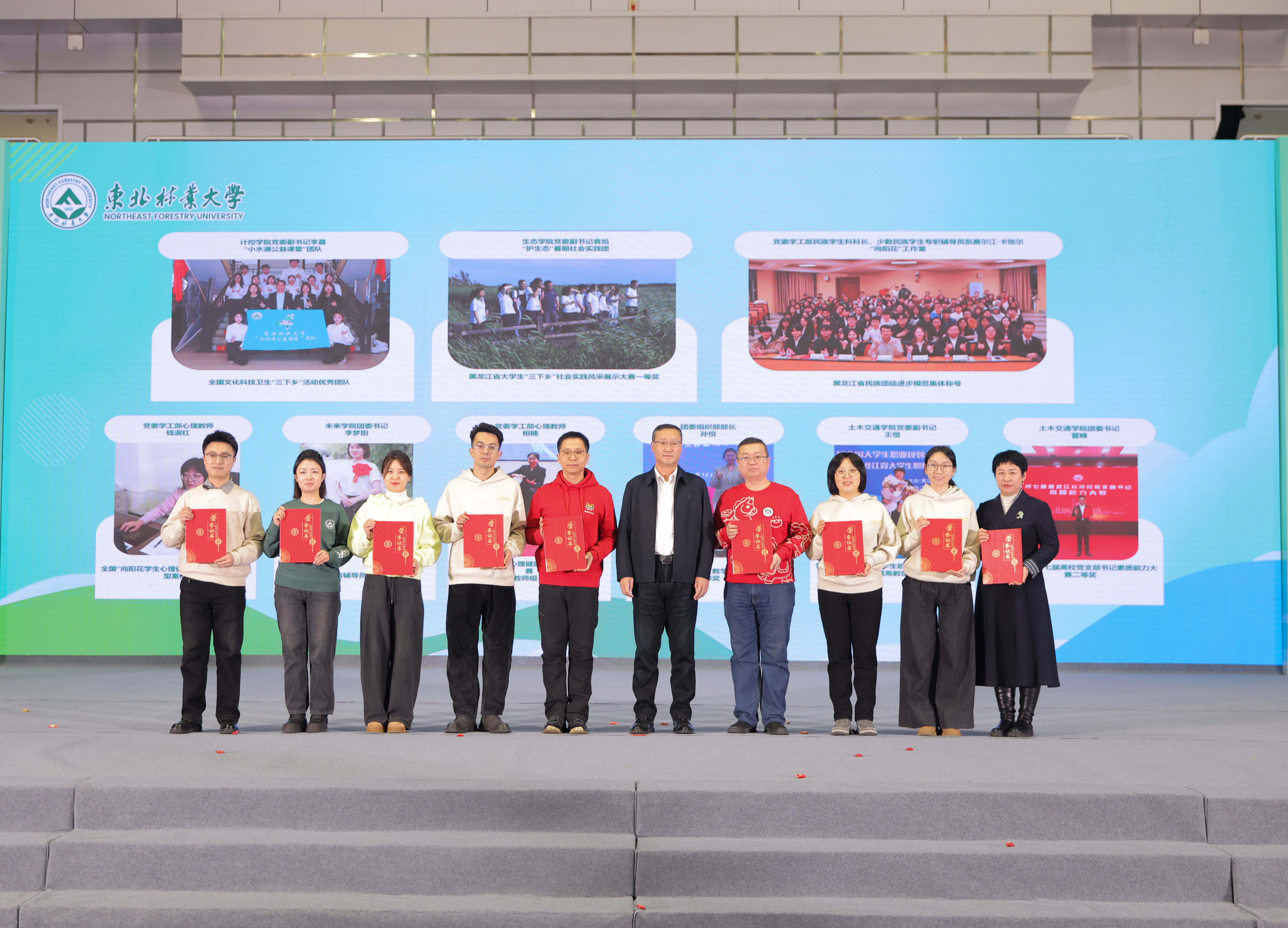 校长宋文龙为2025年取得省级及以上奖励的集体和个人代表颁奖。激励全体学工干部在各自岗位中继续向上攀登,不断发力。
